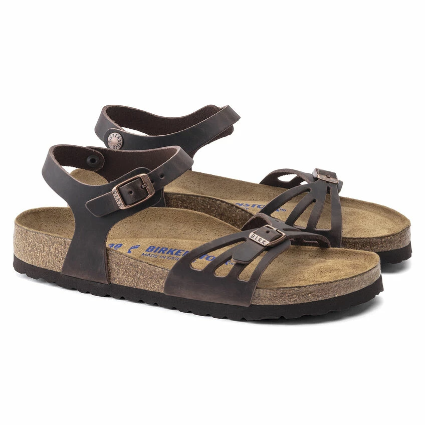 The BIRKENSTOCK Bali – a versatile sandal with a backstrap for stability and feminine cutout details. With its additional foam layer, the soft footbed offers extra comfort β all day long. Featured in oiled leather.