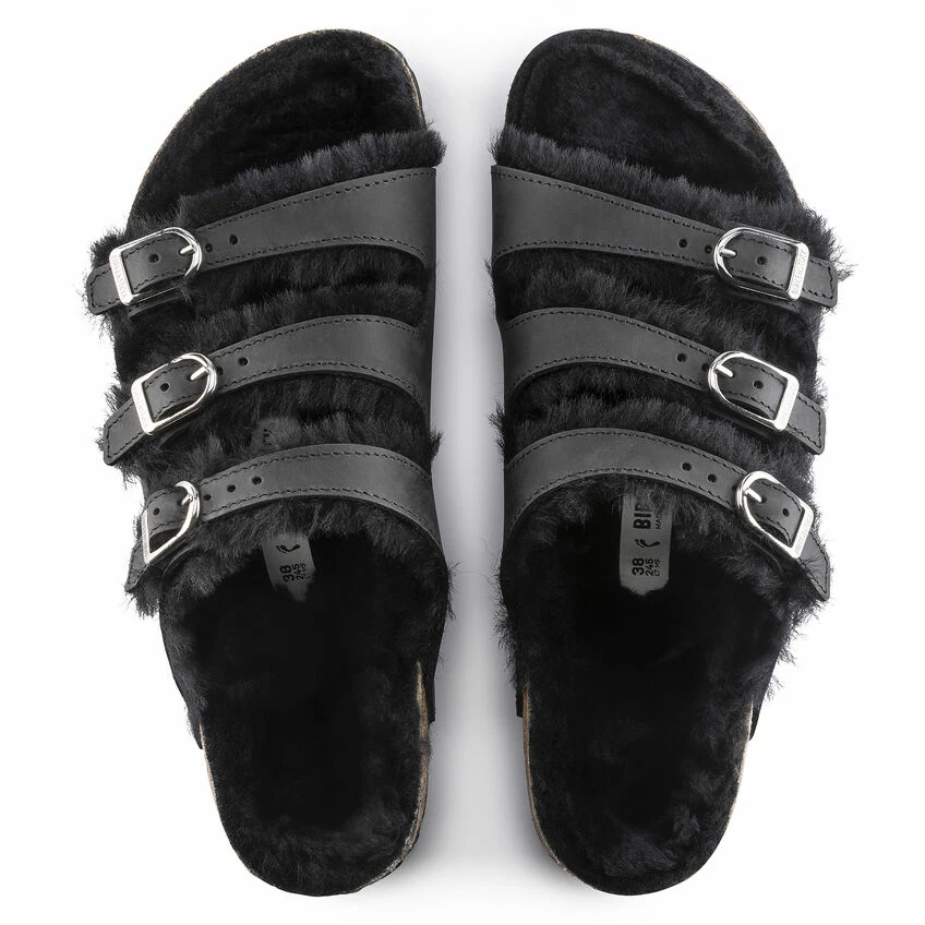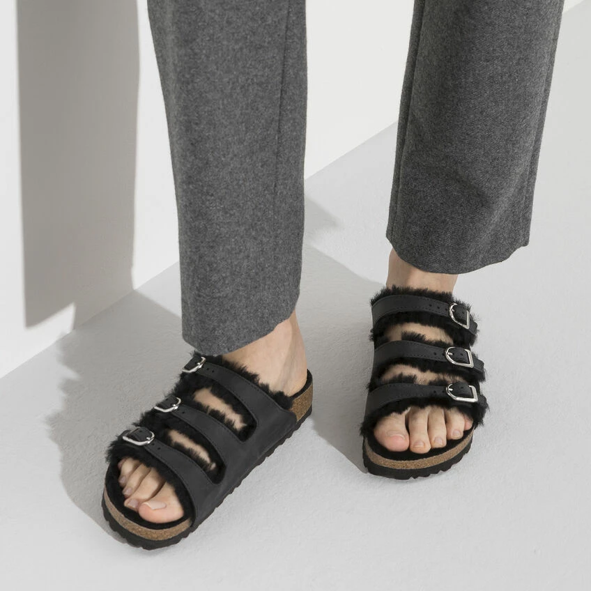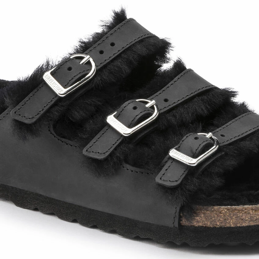 The Florida Fresh – strappy style meets signature comfort. This BIRKENSTOCK slide features three slender, adjustable straps and a contoured cork/latex footbed that forms to the shape of your foot. This version is lined with especially cozy shearling. With D-buckles and a color-coordinated footbed to round off the overall look. The upper is made from extra thick, oiled nubuck leather.
