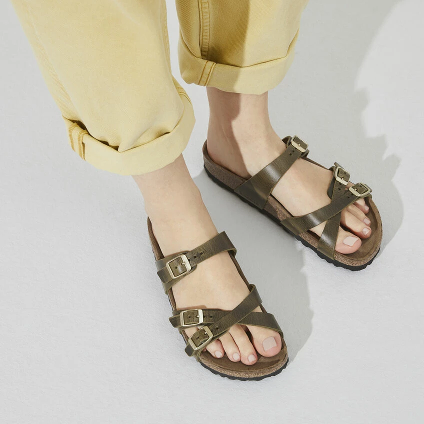 The BIRKENSTOCK Franca combines design and comfort to provide you with all day support and style. This sandal features slim cross-over straps for a fashionable look that will compliment any outfit. The upper is made from extra thick, oiled nubuck leather.