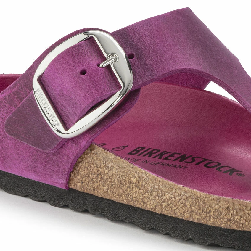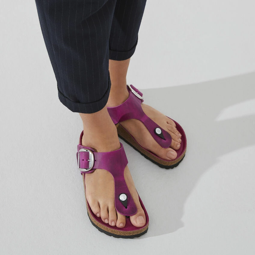 Iβm so happy with my purchase of the Birkenstock Gizeh sandals. The oiled leather is soft and high-quality, and the Big Buckle adds a chic element. The fuchsia color is stunning, and they are very comfortable. I would definitely buy them again!