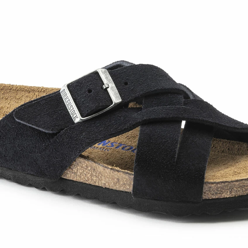 The Lugano is a retro woven-style sandal, featuring soft, suede leather crossed-straps and the classic comfort of a BIRKENSTOCK footbed. With its additional foam layer, the soft footbed offers extra comfort โ all day long.