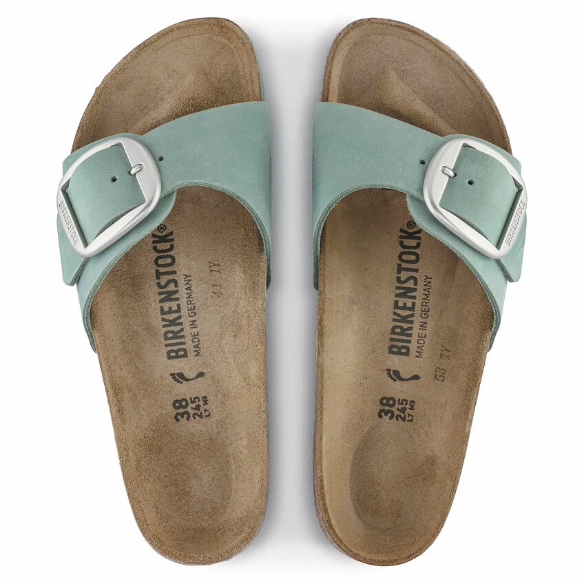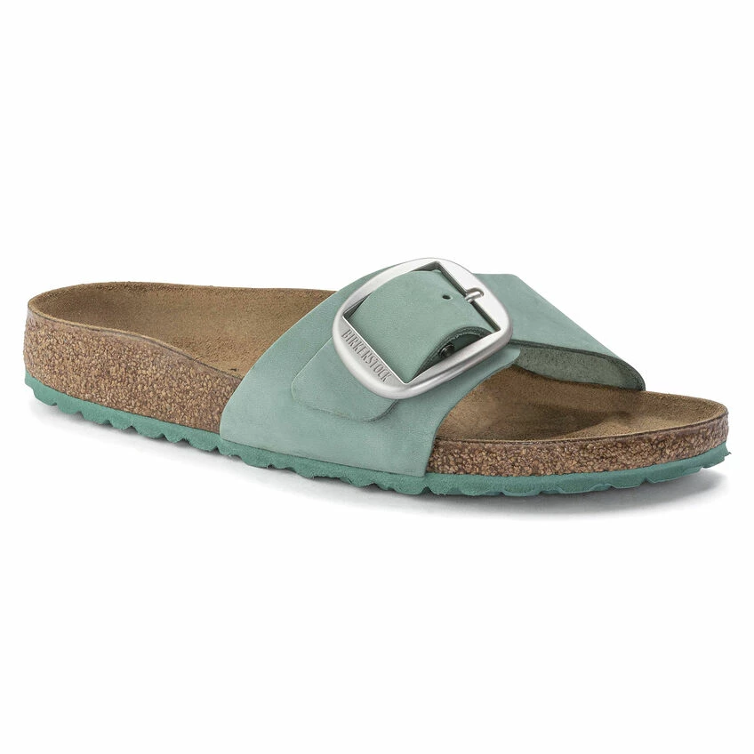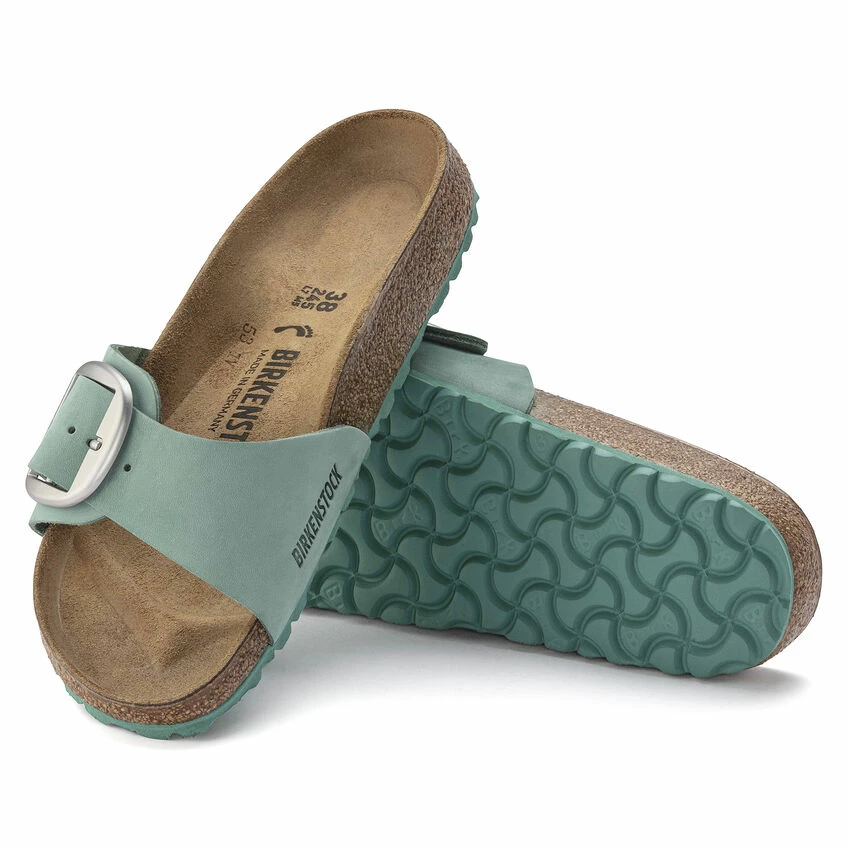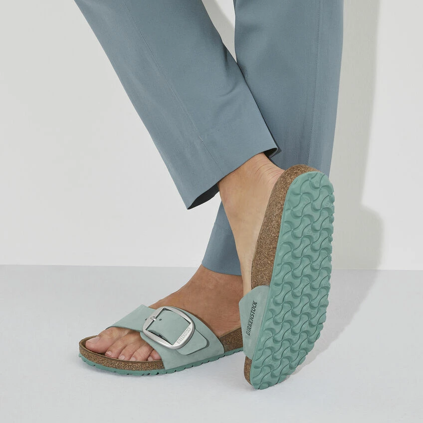 A strap, a buckle and a contoured cork footbed are masterfully combined to create the original Birkenstock sandal – the Madrid. An iconic slide with an amplified buckle accent. Shown in nubuck leather.