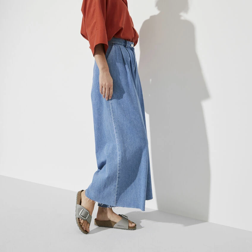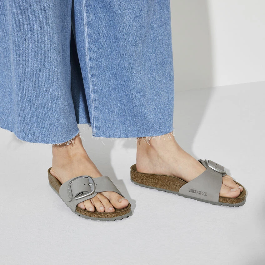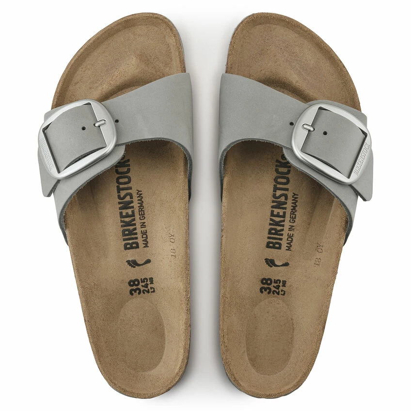 A strap, a buckle and a contoured cork footbed are masterfully combined to create the original Birkenstock sandal – the Madrid. An iconic slide with an amplified buckle accent. Shown in nubuck leather.