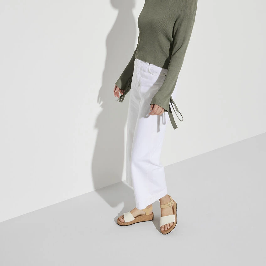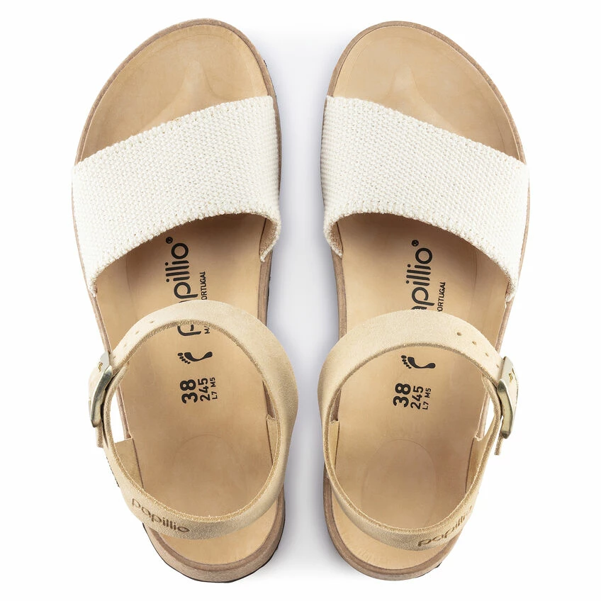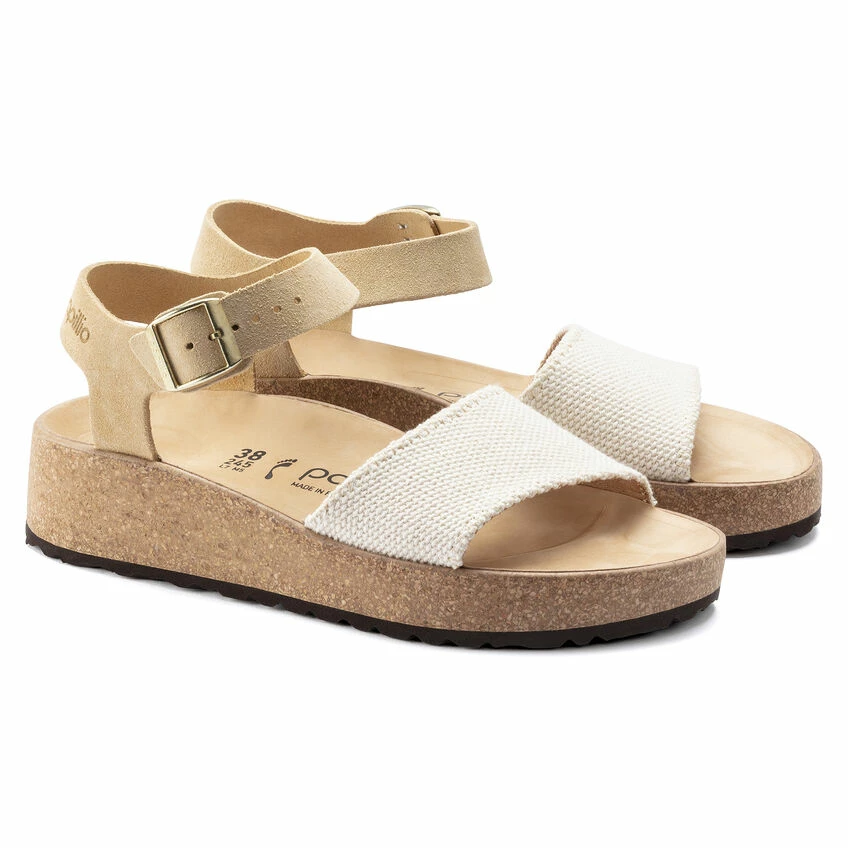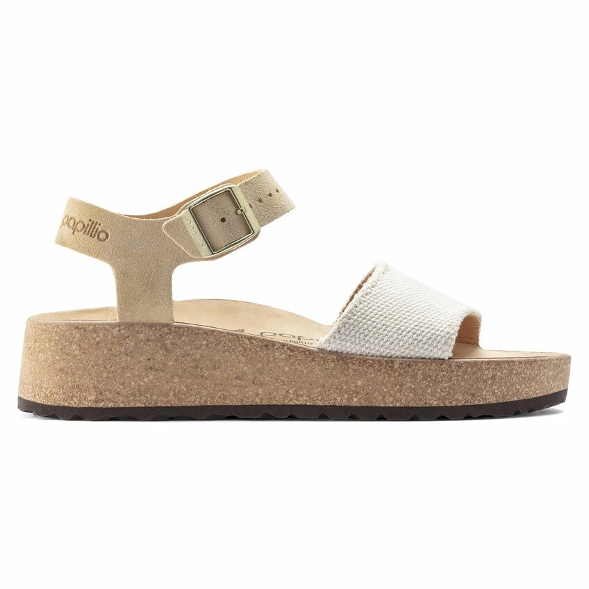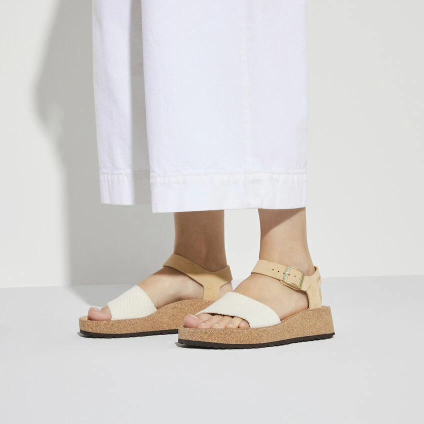 Introducing the Glenda from Papillio. A trendy, new back-strap flatform sandal. The mixed material straps round out the look – athletic inspired canvas and soft suede. Featuring the signature comfort you’ve come to know, with a lift. Take your BIRKENSTOCKs to the next level.